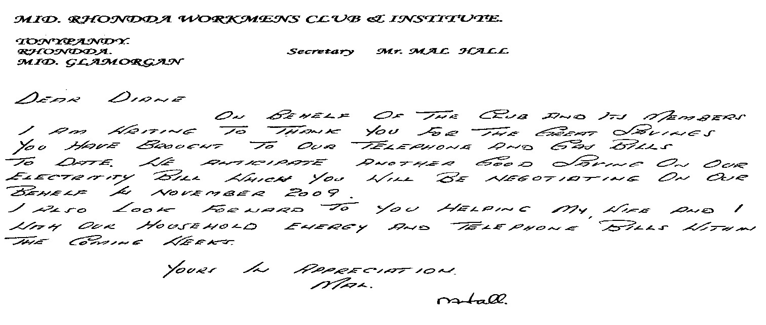 I met with Diane Pardoe of Cub-Wales Ltd. last year while our club was still engaged in a utilities contract for both services. Diane promised if we gave her permission, when the contracts were approaching renewal she would contact me with better offers and if we were satisfied with her findings we could take up the options. True to her word she did, we have just signed a new gas supply contract which is saving our club a substantial amount per annum and the electric is due to be renewed in the near future.